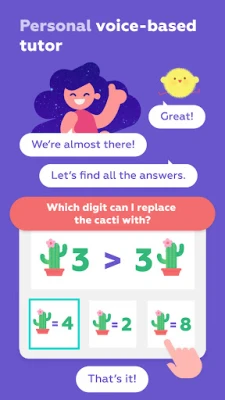 Our AI tutor tailors the program to a child, scaffolds learning, asks guiding questions instead of serving up answers, introduces math terms, and provides hints when needed.
