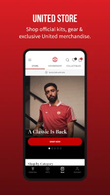 • Shop the United Store: Show your colours and purchase authentic United shirts, exclusive fashion wear, accessories, and merchandise directly in the app.