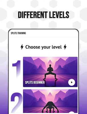 Embark on a "30 day splits training at home" program, designed to cater to your current level of flexibility. Our app tailors exercises to help you achieve the splits in 30 days, with routines suitable for beginners through to advanced users.