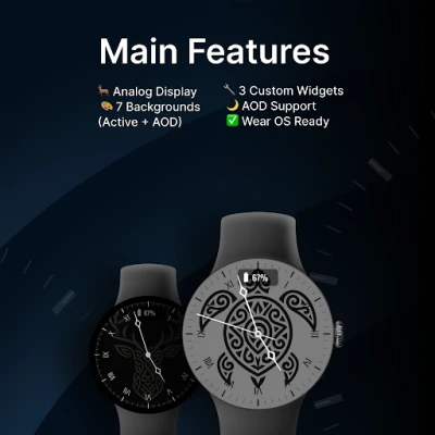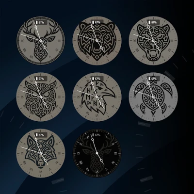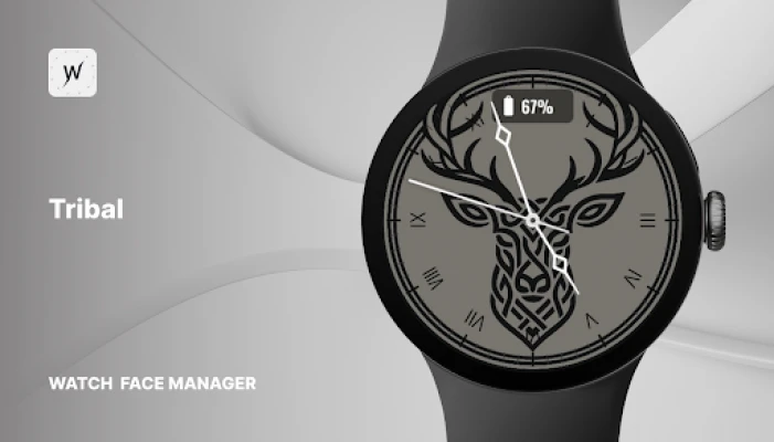 Tribal blends striking artistry with functional precision. Featuring a bold tribal deer design at its center, this analog face delivers more than just style. With 7 interchangeable backgrounds (each available in active and AOD modes), it adapts perfectly to your mood and setting.